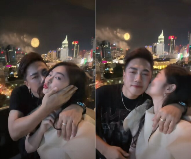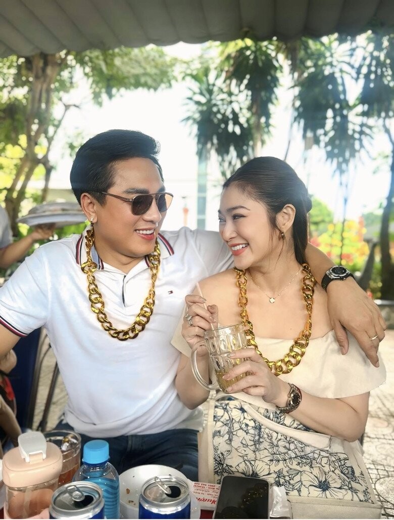 Bà xã Châu Khải Phong chia sẻ: “Mình yêu thương chồng mình lắm nha cả nhà ơi. Chỉ là sợ hình ảnh ôm hôn hoài, nó bị sến sẩm thôi, chứ hình ảnh tụi tôi yêu thương nhau thì đầy bộ nhớ điện thoại nha”.
