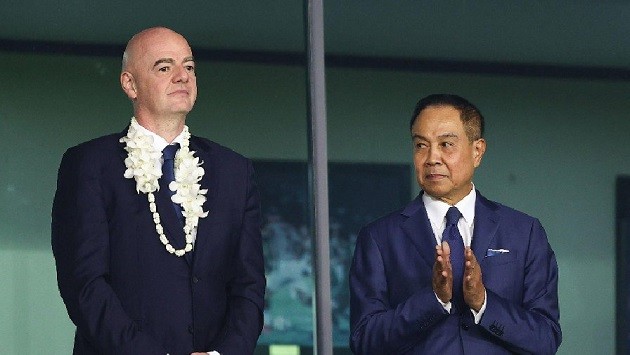 FIFA của ông Gianni Infantino luôn rất sẵn sàng xử lý những vụ việc kiểu như của ông Somyot Poompanmoung (phải).
