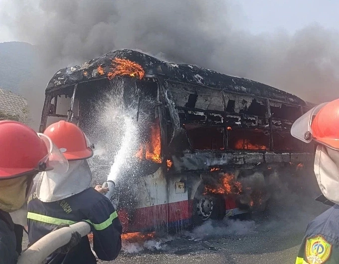 Khoảng 14h, anh Lê Tất Duy (37 tuổi, trú quận Bình Thạnh, TP HCM) lái xe khách chạy từ khu vực Tây Hòa (Đăk Lăk) về hướng Vạn Thắng (Khánh Hòa) để sửa chữa. Khi đến đoạn đường thuộc thôn Ninh Lâm, xã Tu Bông, phần đuôi xe bất ngờ bốc cháy, nghi xuất phát từ khu vực lốc máy.