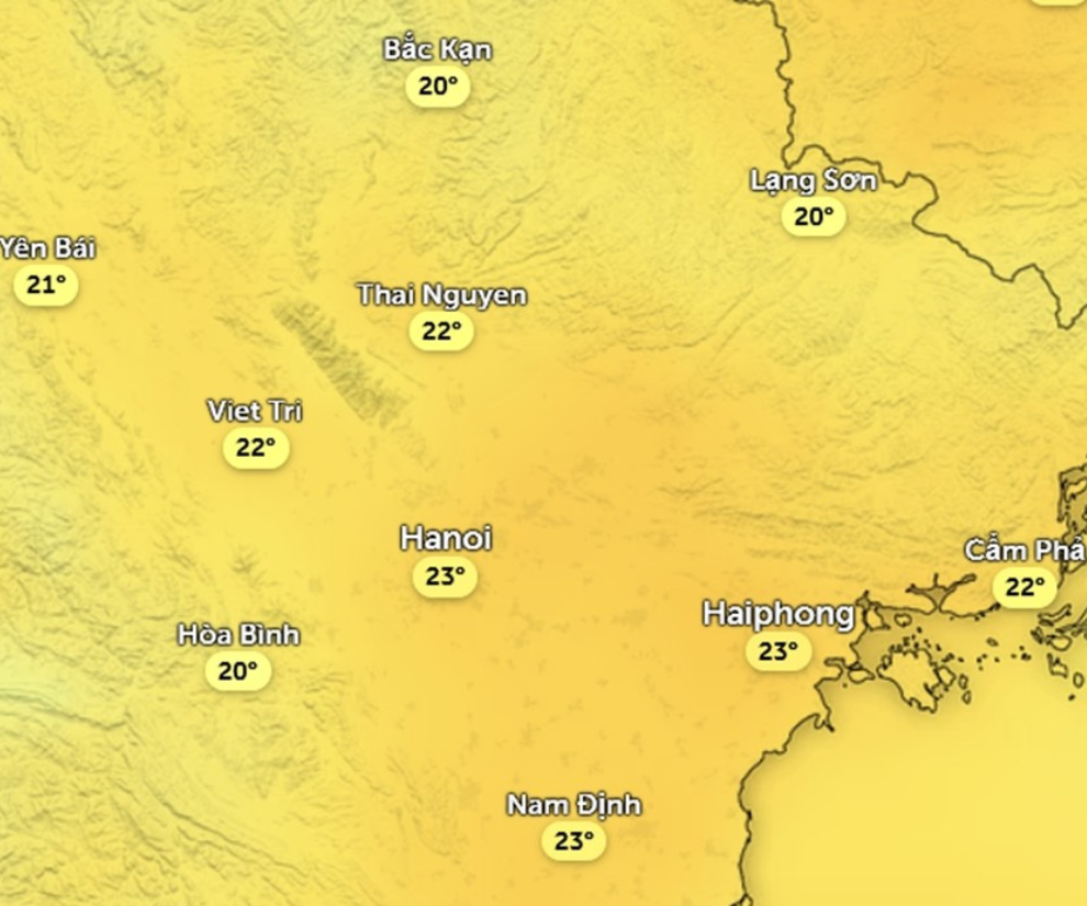 Ngày mai, trời nhiều mây hơn và có thể do một chút xíu không khí lạnh (thực sự là “chút xíu” vì không khí lạnh lệch Đông và có thể suy yếu ngay trong ngày mai) nên nhiệt độ buổi trưa và chiều ở Hà Nội còn khoảng 22 - 23 độ C.