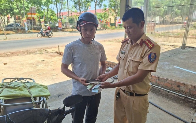 Qua kiểm tra, bên trong ví có giấy tờ tùy thân mang tên Nguyễn Hữu Đạt (32 tuổi, ở thôn 4 Ea Hu, xã Cư Kuin, tỉnh Đắk Lắk), cùng số tiền khoảng 30 triệu đồng và nhiều giấy tờ quan trọng khác.Ngay sau đó, cán bộ Tổ tuần tra kiểm soát đã phối hợp với Công an xã Quảng Sơn tiến hành xác minh, đồng thời liên hệ với chủ sở hữu tài sản.
