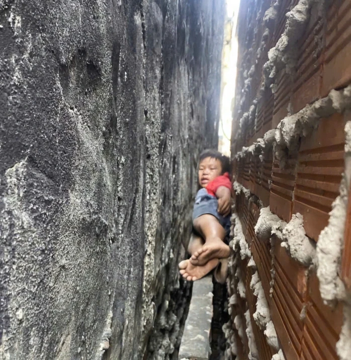 20 phút giải cứu cháu bé bị mắc kẹt giữa hai bức tường nhà ở TPHCM