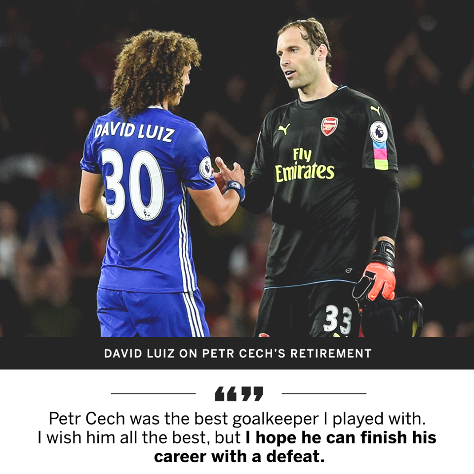 Một danh hiệu Châu Âu sẽ là sự chia tay đáng nhớ cho ngôi sao người CH Séc, nhưng trung vệ David Luiz bên phía Chelsea không nghĩ vậy, mặc dù anh vẫn tin tưởng rằng Cech nằm trong số những thủ thành hay nhất anh từng chơi trước mặt.