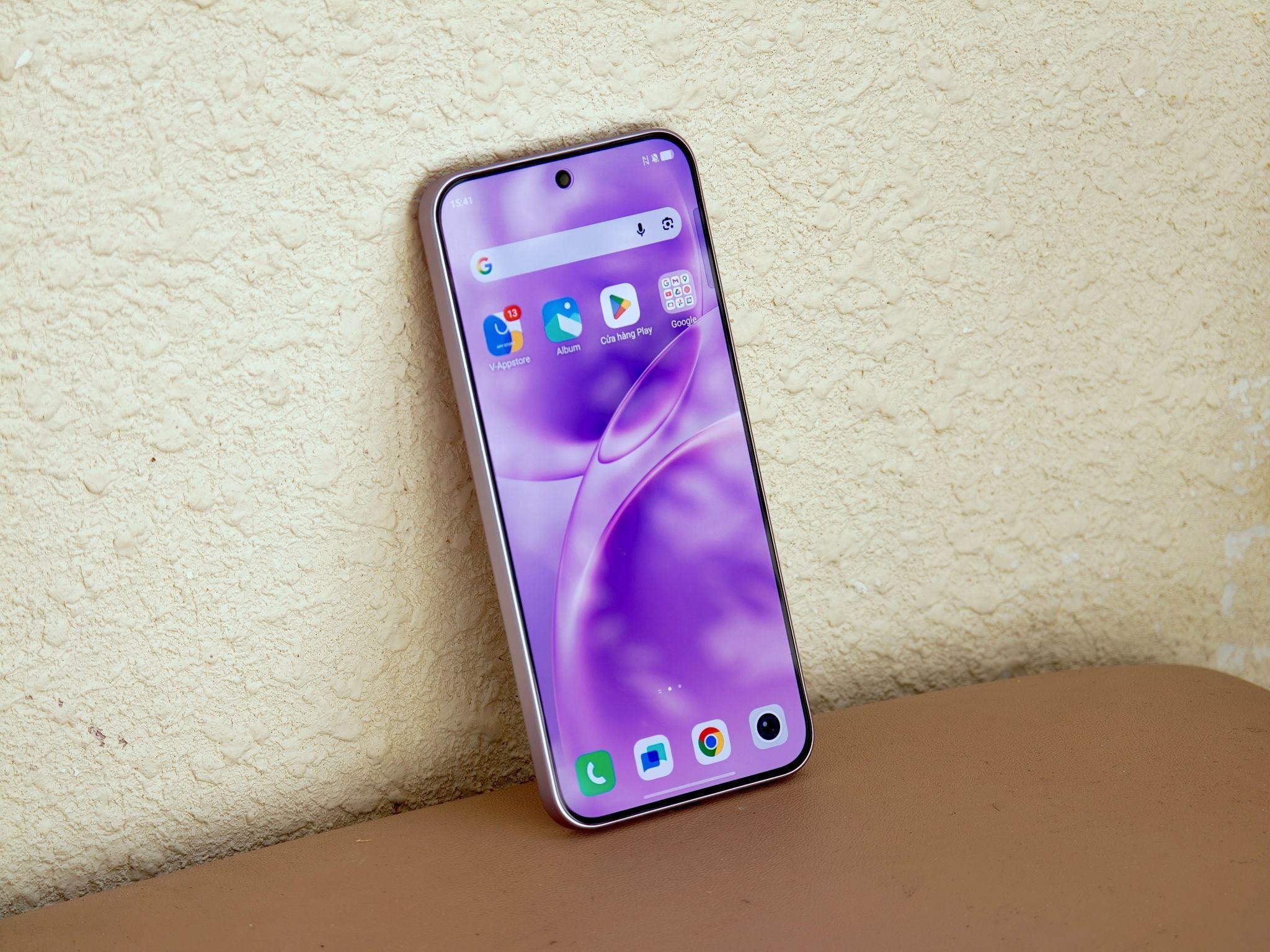 Dưới ánh sáng, màu sắc của máy thay đổi nhẹ nhàng, không quá "chói loá" nhưng đủ để tạo sự sang trọng. Với phiên bản màu tím, máy còn có họa tiết như hình chiếc lá, tạo nên điểm nhấn độc đáo.