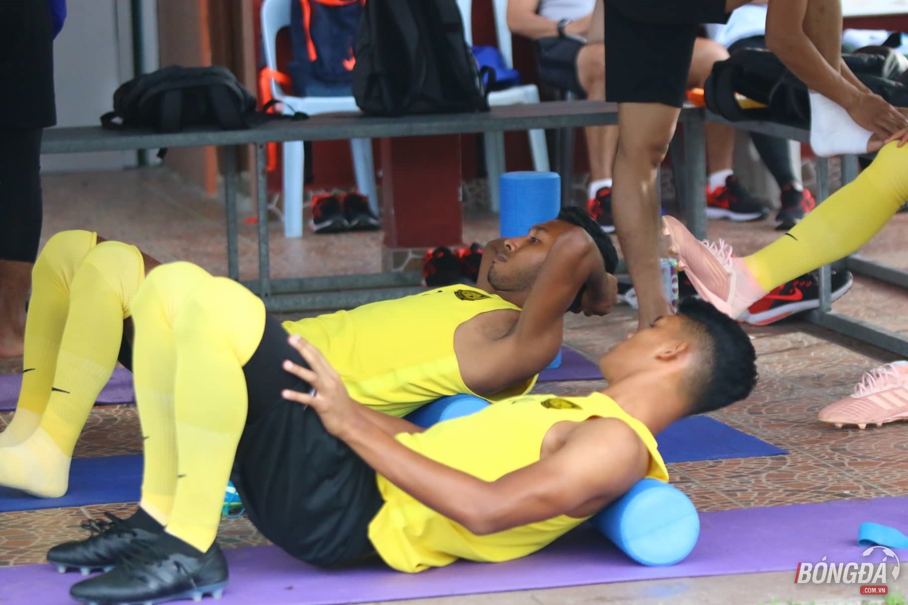 Trong khi đó ở bên trong sân tập, các cầu thủ Malaysia tỏ ra rất thoải mái sau khi "thoát chết" tại Bangkok.