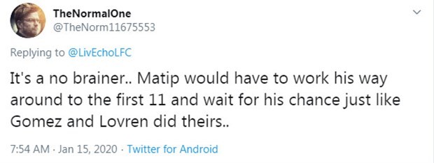 "Matip cần phải nỗ lực để giành lại suất đá chính như cách Gomez và Lovren đã làm."