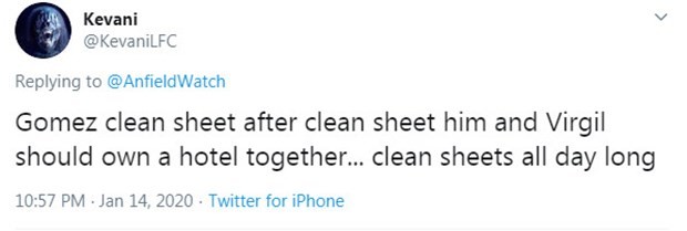 "Gomez liên tục có những trận sạch lưới. Anh ấy và Van Dijk đang thi đấu rất ăn ý với nhau."