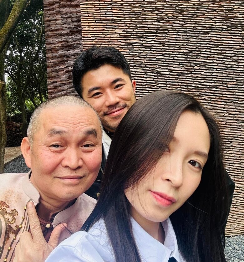 Nam nghệ sĩ chụp ảnh cùng con gái và con rể.
